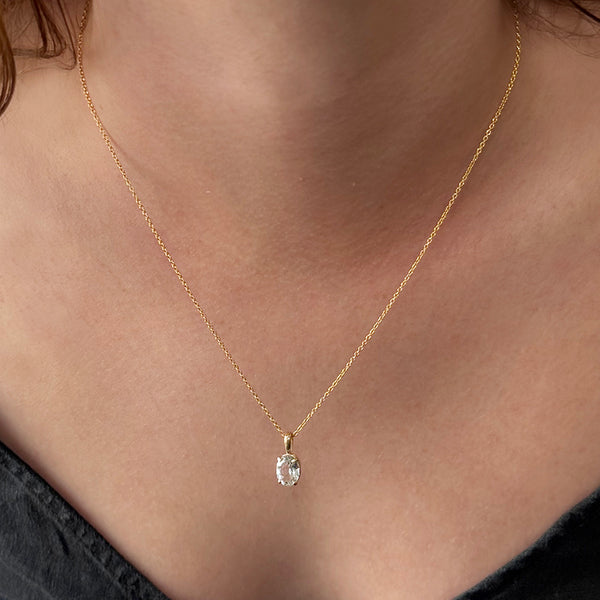 Oval 9 x 7mm Flinders Island White Topaz Necklace ~ Yellow Gold
