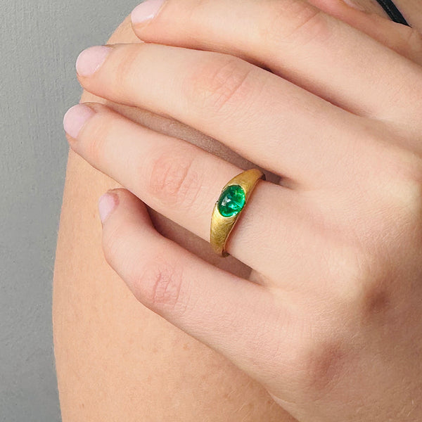 0.87ct Flush Set Emerald Ring ~ 18ct Yellow Gold