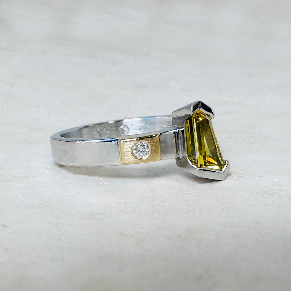Parti Sapphire & Diamond Ring ~ Platinum & Yellow Gold