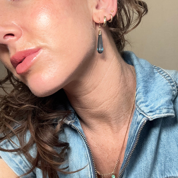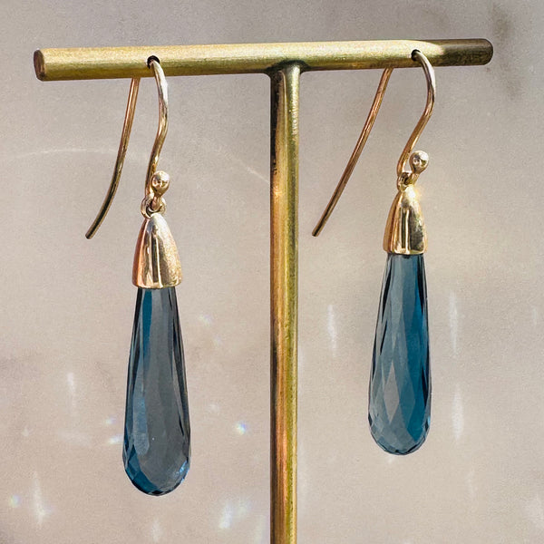 London Blue Topaz Briolette Drop Earrings ~ 9ct Yellow Gold
