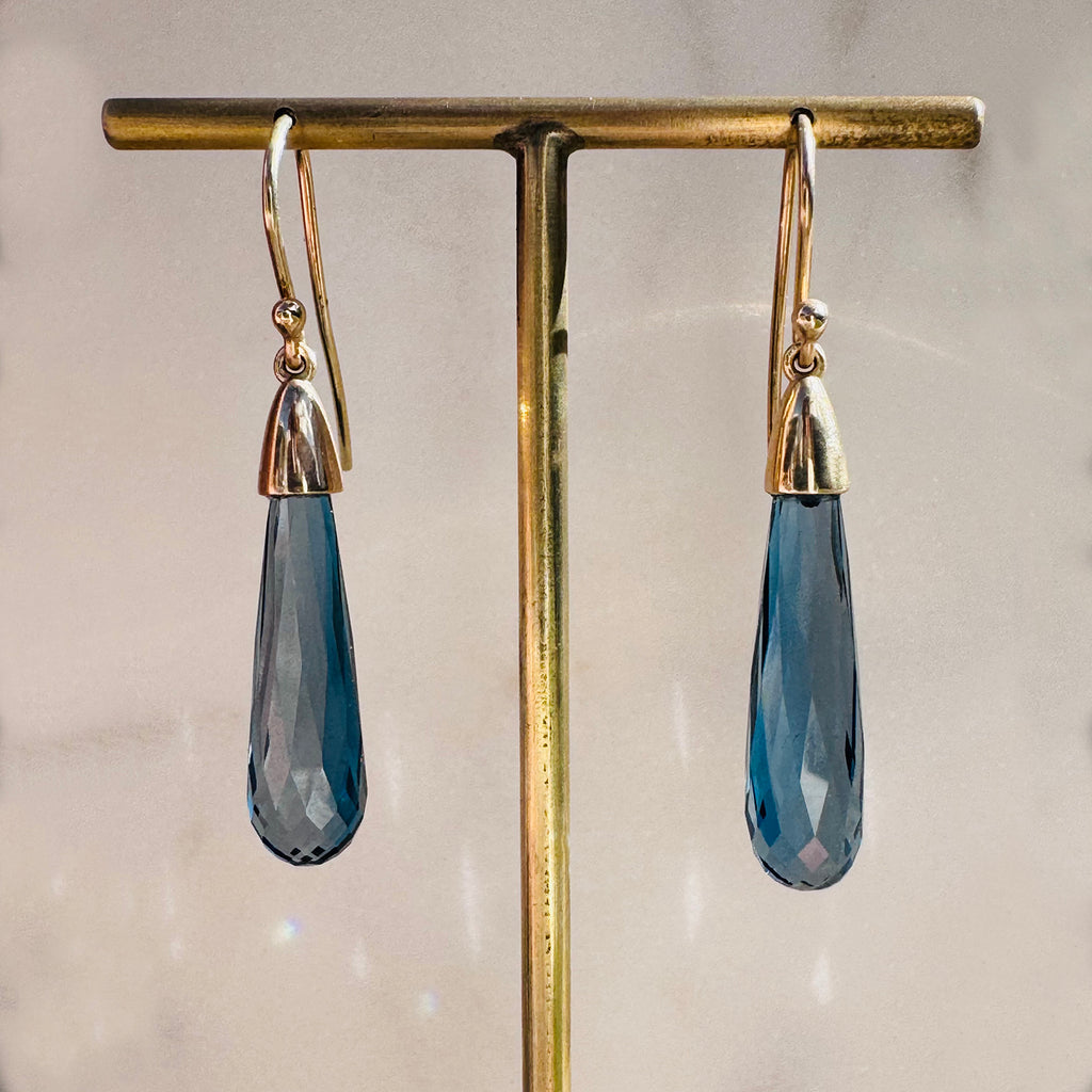 Stunning earrings featuring tear drop shaped briolette cut topaz gemstones.