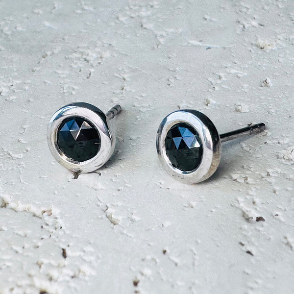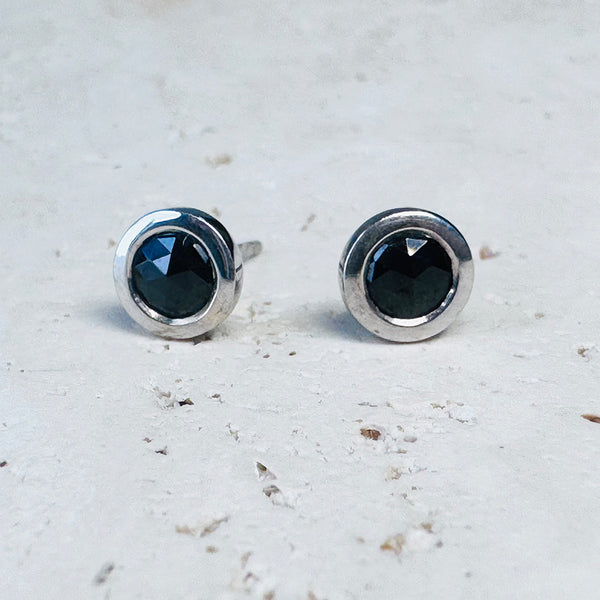 Rose Cut Black Spinel Studs ~ 9ct White Gold