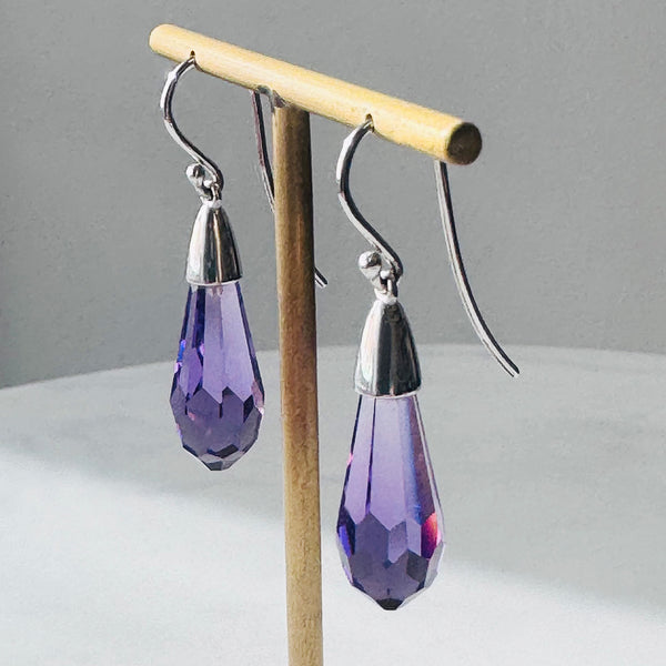 • Amethyst Briolette Drop Earrings ~ 9ct White Gold