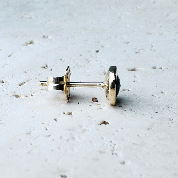 Rose Cut Black Spinel Studs ~ 9ct Yellow Gold