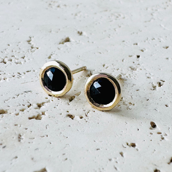 • Rose Cut Black Spinel Studs ~ 9ct Yellow Gold