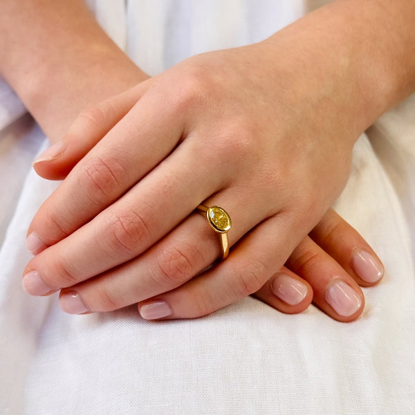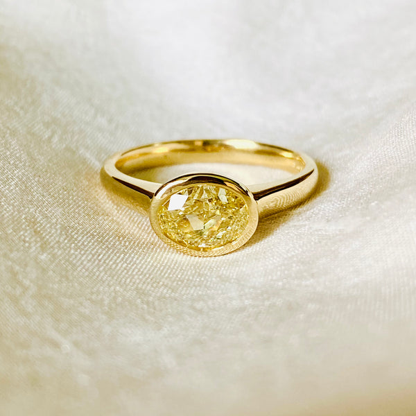 Oval East-West 1.08ct Yellow Diamond Ring ~ 18ct Yellow Gold