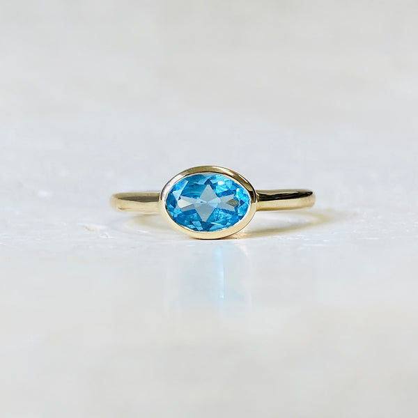 Swiss Blue Topaz East-West Ring ~ Yellow Gold