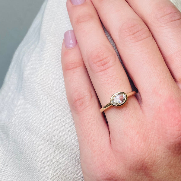 • Flinders Island White Topaz East-West Yellow Gold Ring