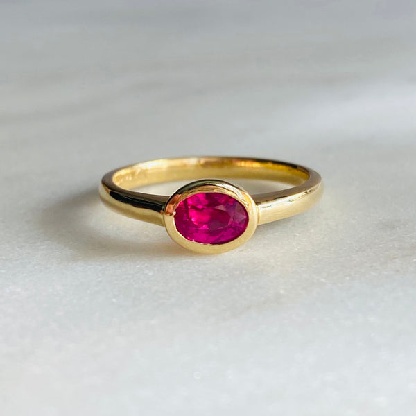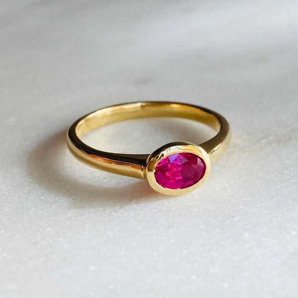 • Floating Bezel Set Ruby Ring ~ 18ct Yellow Gold