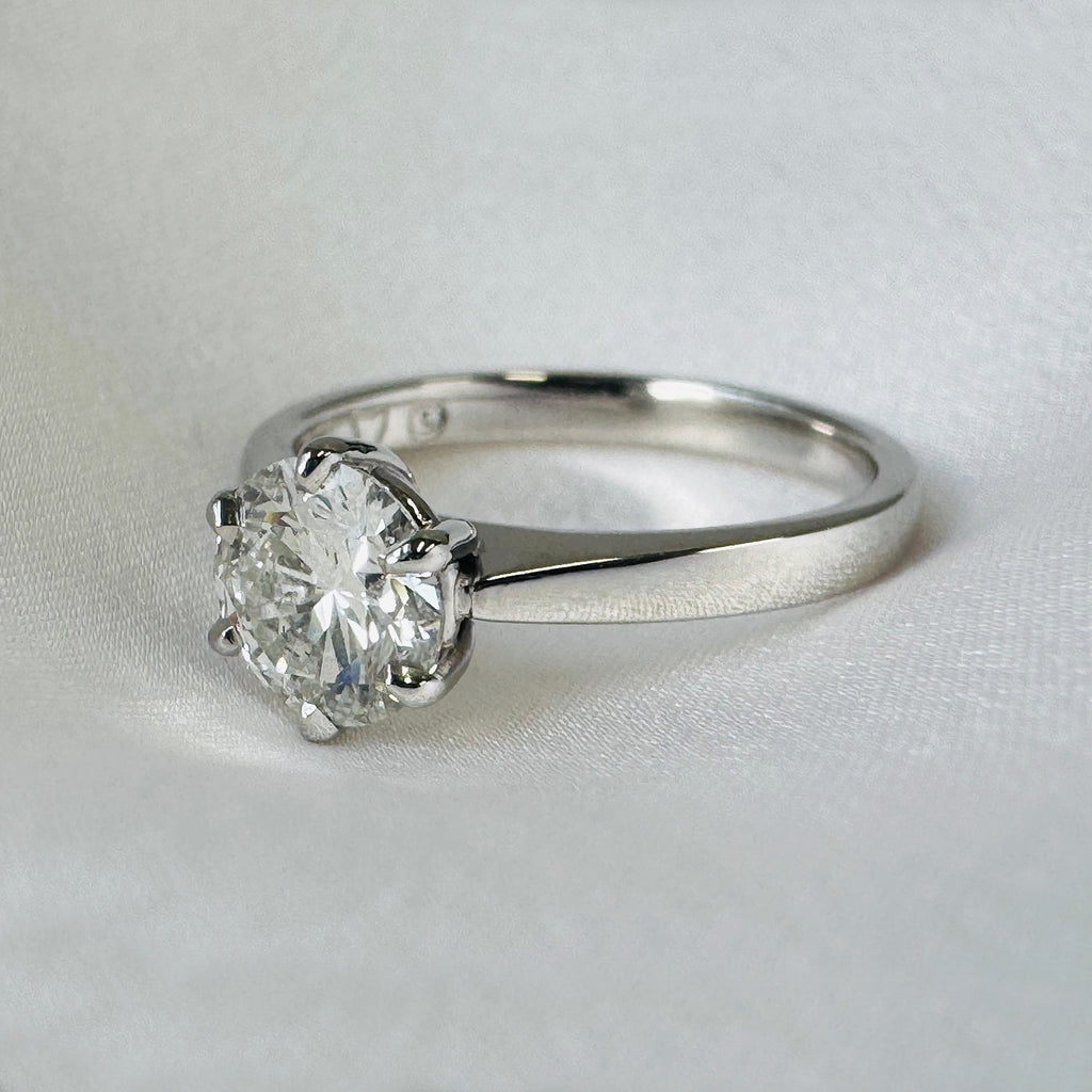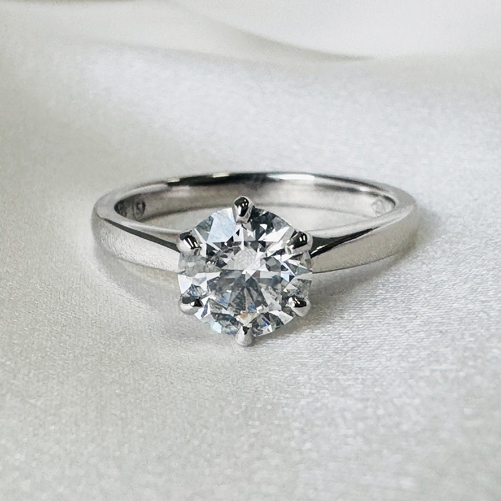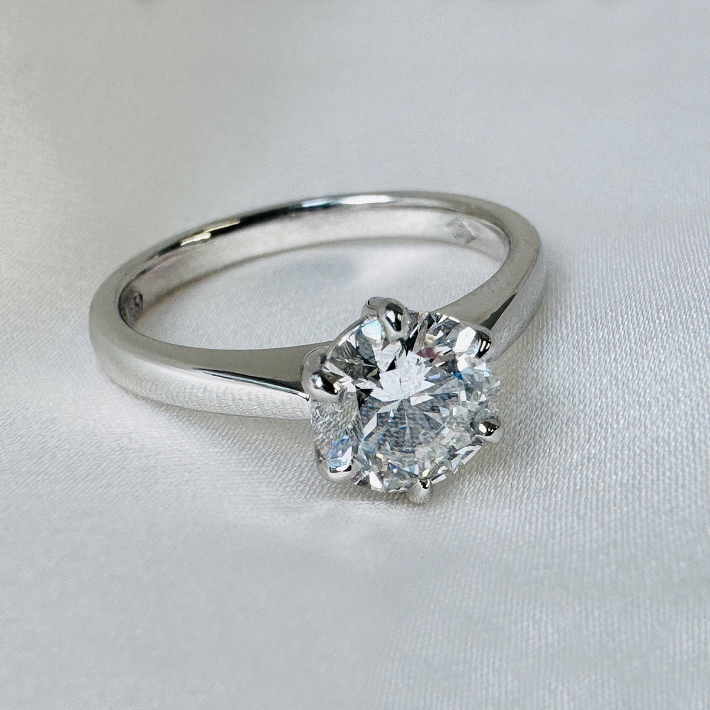 This solitaire engagement ring features a stunning IGI certified round brilliant cut diamond, hand selected by our in-house gemologists