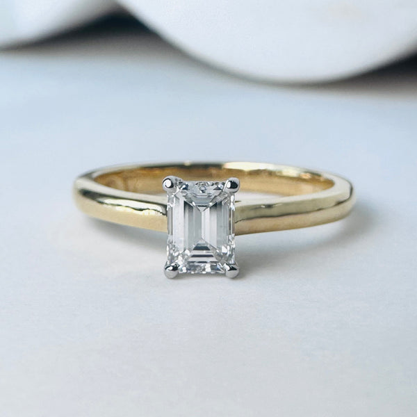 0.70ct Emerald Cut Diamond Solitaire Ring ~ 18ct Yellow Gold