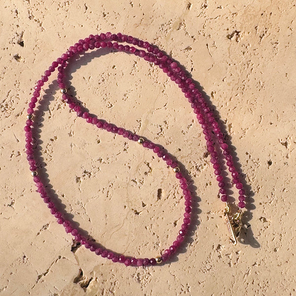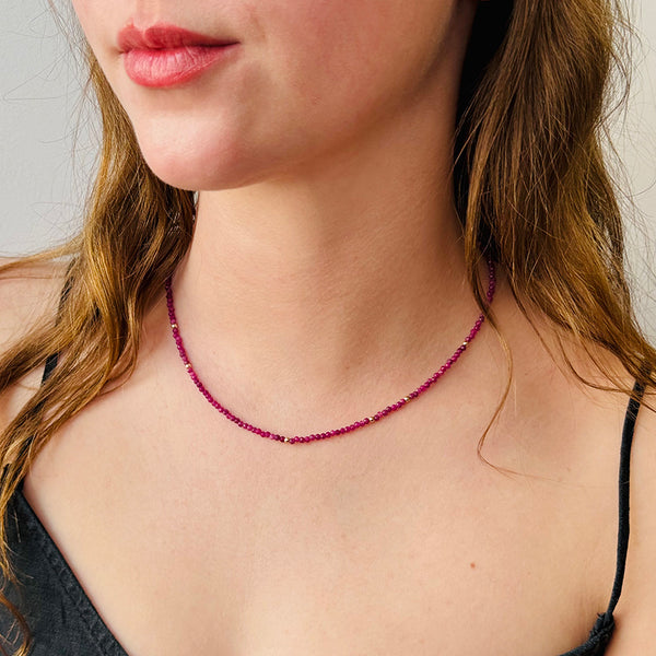 • Rhodolite Garnet & Yellow Gold Beaded Necklace