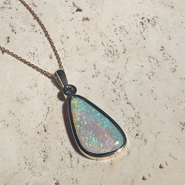 Handmade 7.28ct Solid Opal & Cognac Diamond Pendant ~ 18ct Yellow Gold