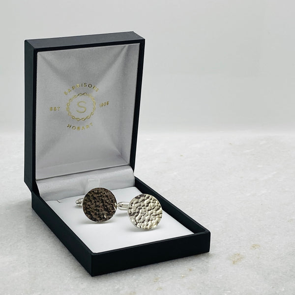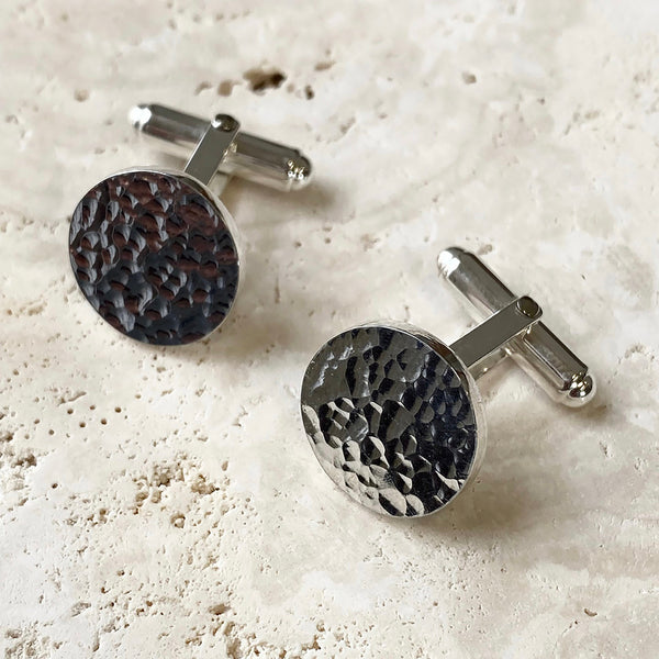 Handmade Sterling Silver Round Planished Cufflinks