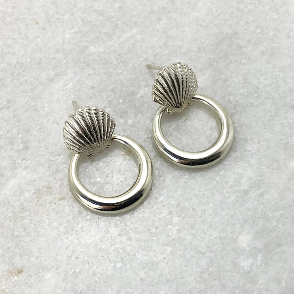 • Creole Hoop Shell Earrings ~ Sterling Silver