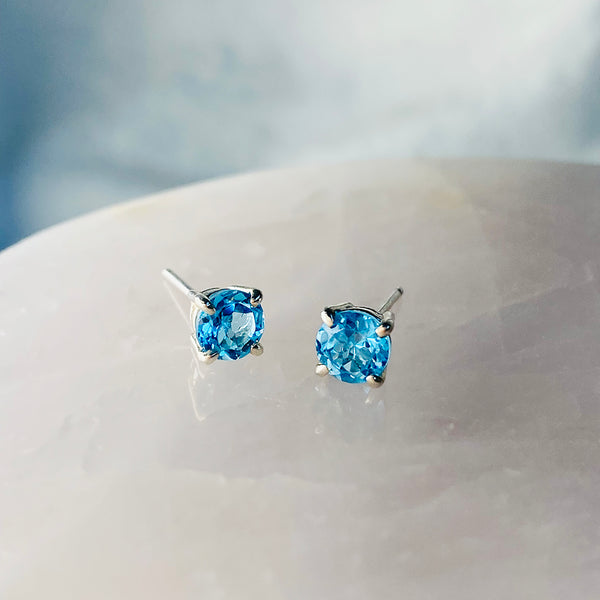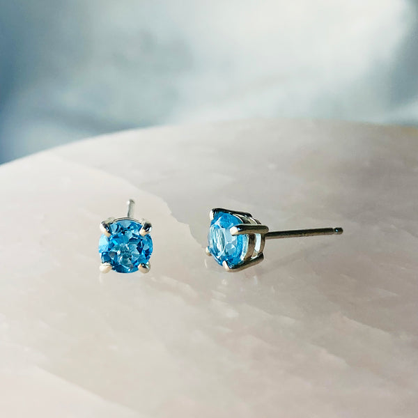 Swiss Blue Topaz Studs ~ Sterling Silver