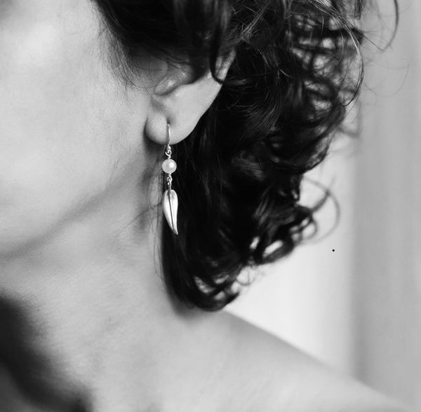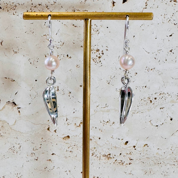 • Gum Leaf Freshwater Pearl Earrings ~ Sterling Silver