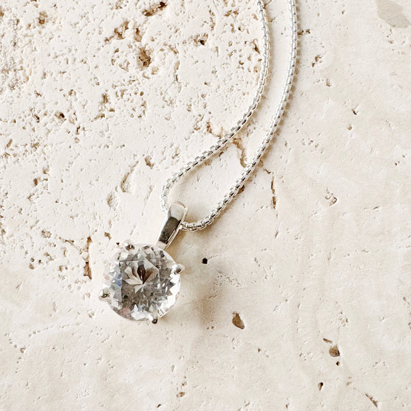 8mm Flinders Island White Topaz Sterling Silver Necklace