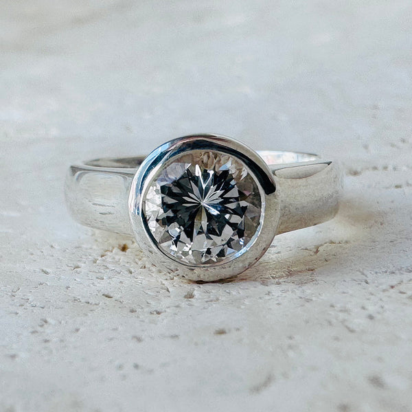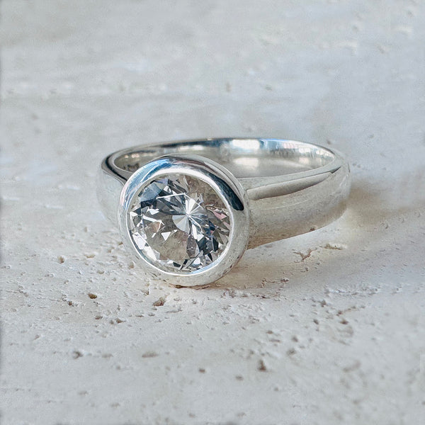 • 7mm Bezel Set Flinders Island White Topaz Sterling Silver Ring