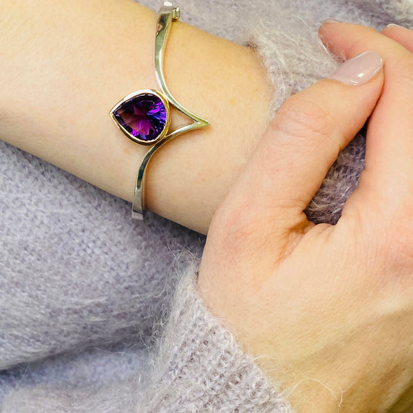 Amethyst Bangle in Sterling Silver & Rose Gold