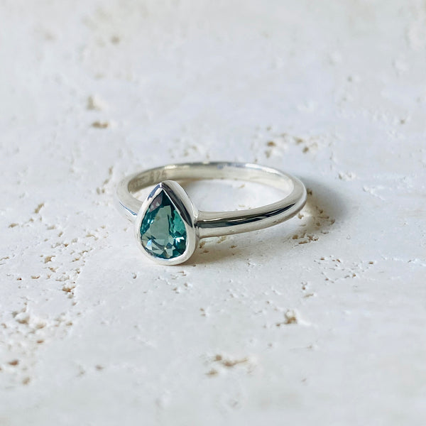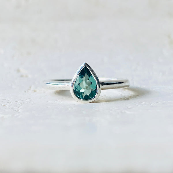 Pear Shaped Green Tourmaline Ring ~ Sterling Silver