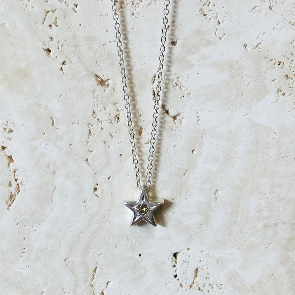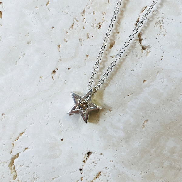 Cognac Diamond Star Necklace ~ Sterling Silver