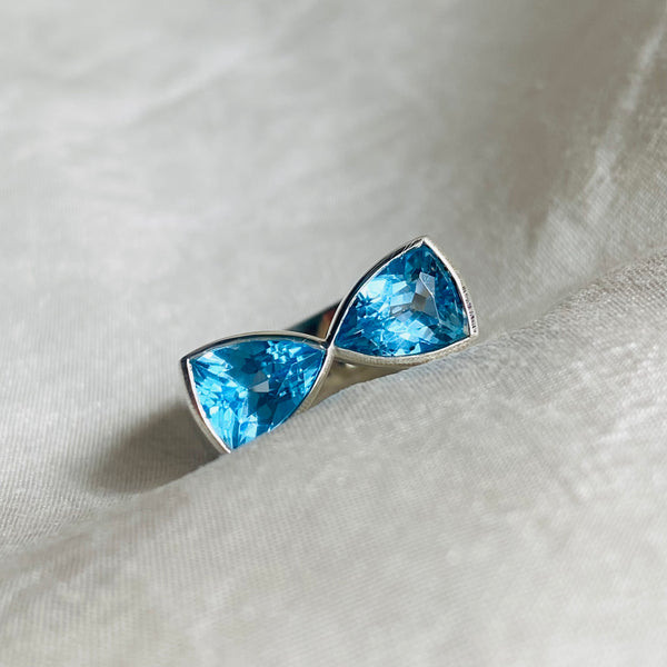 • Trilliant Cut Blue Topaz Ring ~ Sterling Silver