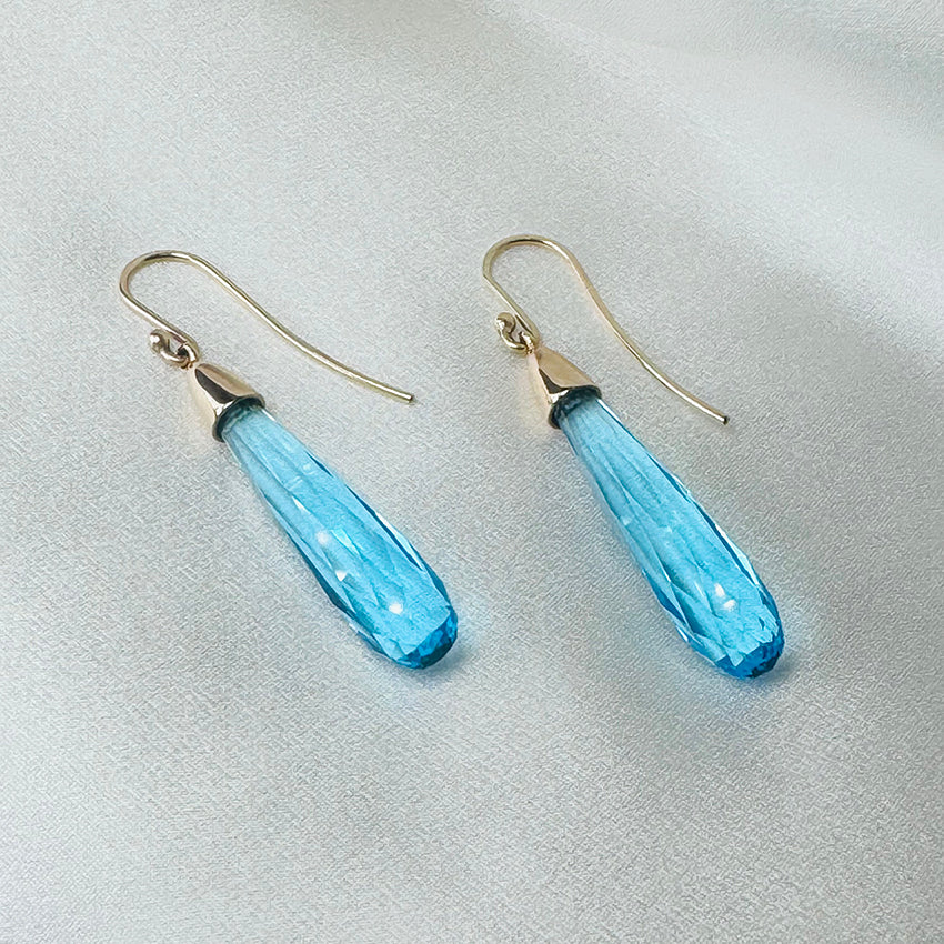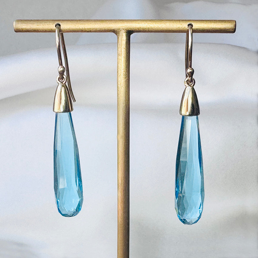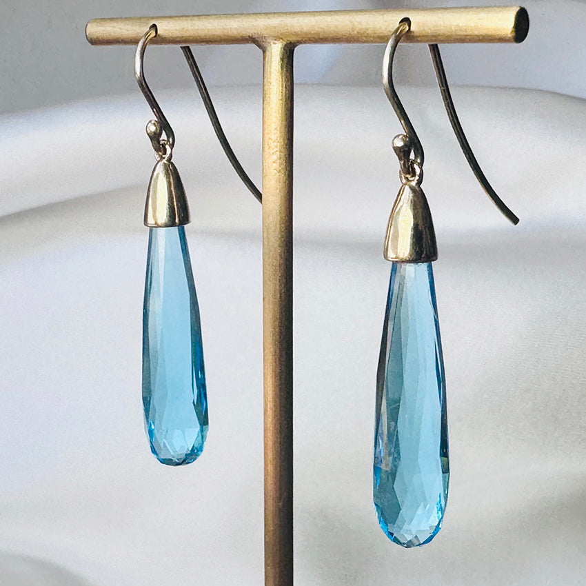Swiss Blue Topaz Briolette Cut Earrings ~ 9ct Yellow Gold