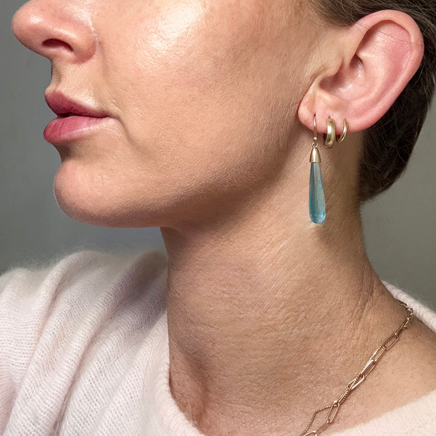 • Gemstone: Blue Topaz. Cut: Briolette cut.
