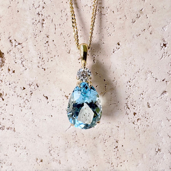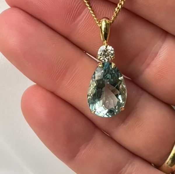 • 6.67ct Acquamarine & Diamond Pendant ~ 18ct Yellow Gold